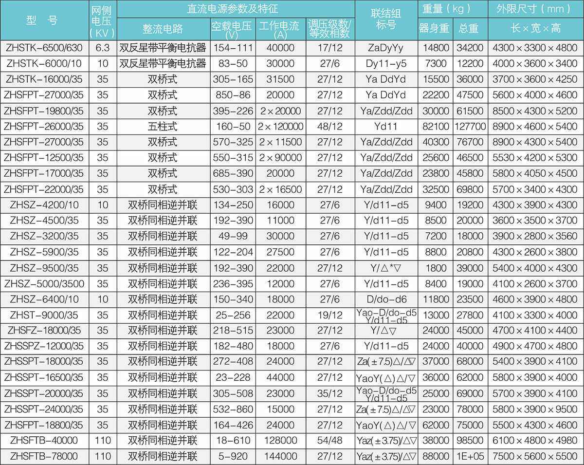 1、阀侧电压不大于1000v,电流可高达100KA。